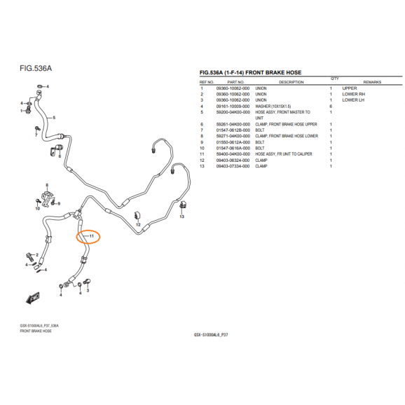 FLEXÍVEL N° 2 (RESERVATÓRIO P/ PINÇA DE FREIO) SUZUKI GSX-S1000A